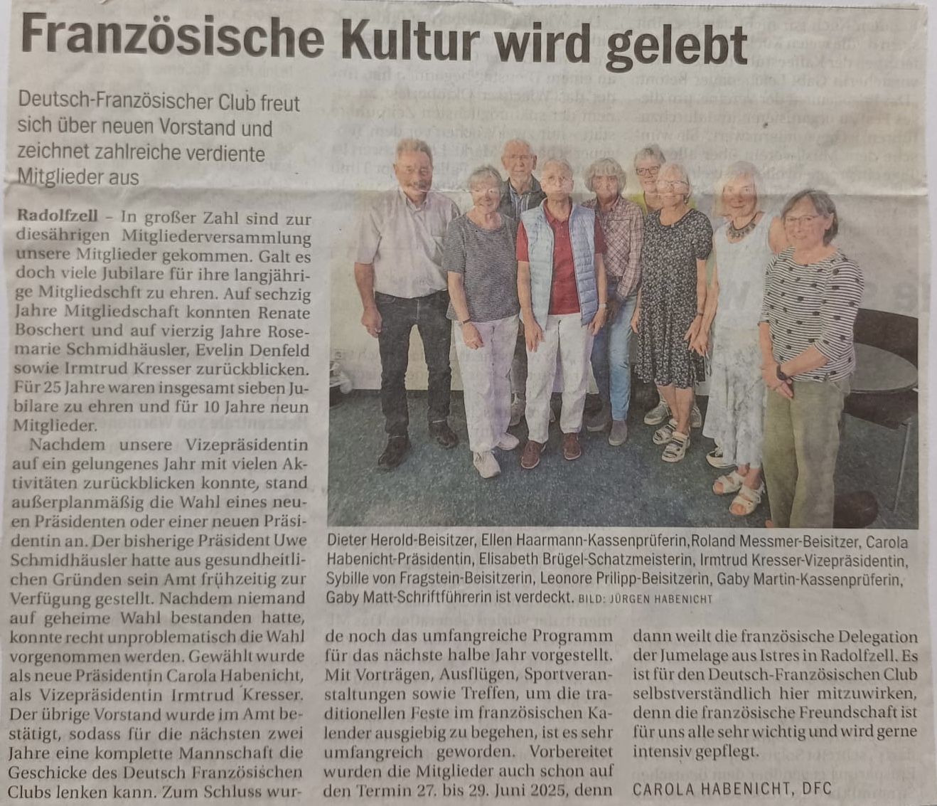 Bericht der Generalversammlung aus dem Südkurier im Oktober 2024
